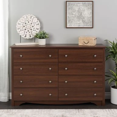 Add timeless style and ample storage space to your bedroom with the Prepac Sonoma 8-Drawer Dresser. The dresser is perfect for partners to share in a master bedroom or for a teenager’s fashion addiction. With eight drawers, you can keep your clothes organized and separate, while the 59-inch wide top provides plenty of space for a lamp, books, and collectibles. The dresser is made of non-toxic, durable materials and includes a tipping restraint for safety. Coordinating pieces from the Sonoma Collection are available to complete your bedroom’s look.