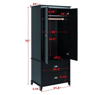 - Assembled Dimensions: 31.5″W x 72″H x 21″D