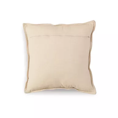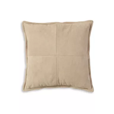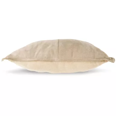 Add casually cool comfort to your couch with this pillow. Its sumptuous suede in an oatmeal-hued patchwork pattern with flange is the essence of chic, cozy style.