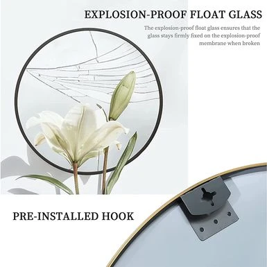 Elevate your home decor with our premium quality and beautifully designed Round Mirror Circle Mirror. With its 4mm copper-free heavy-duty material, this mirror offers a clear, non-distorted HD reflection, perfect for reflecting natural and artificial light. Its frosted aluminum alloy frame adds a touch of modern luxury to any space, making it a great wall decor piece. Measuring 32*32*1.1 inches and weighing 16.65lbs, this large round mirror is versatile enough to be hung in any room, from the bathroom to the living room.