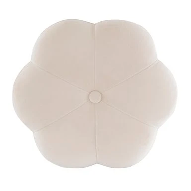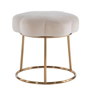 Inspired by Boho design, a perfect pairing of minimal lines while still conveying a luxurious style. Plush white velvet is used to create this subtle floral shape that offers soft padding for comfort. The foundation is an elegant gold color plated base. Sitting 17.75 inches off the floor, this happy stool can fit under a make up vanity, bathroom prep table, desk or really, anywhere. Adds a welcomed pop of color to any room. Multiple colors to mix and match.