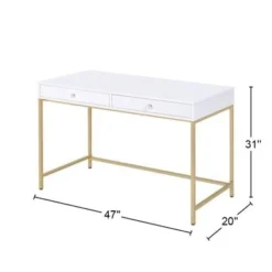 2 Drawers Vanity Desk In White High Gloss And Gold – White High Gloss And Gold