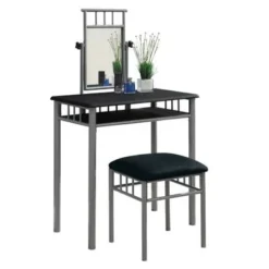 Vanity Desk With Jewelry Tray And Mirror In Walnut And Gold Finish – Walnut And Gold