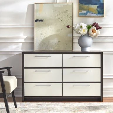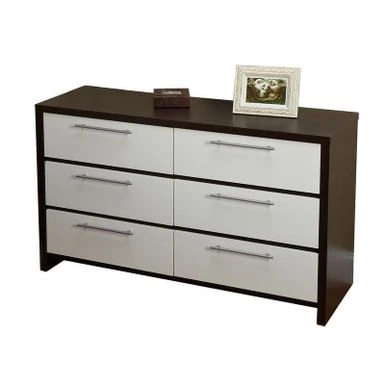 Modernize your clothing storage with this two-toned dresser from Simple Living. The MDF and paper laminate frame features six spacious drawers and sleek metal pulls. White drawer fronts offer contemporary contrast to the espresso exterior.