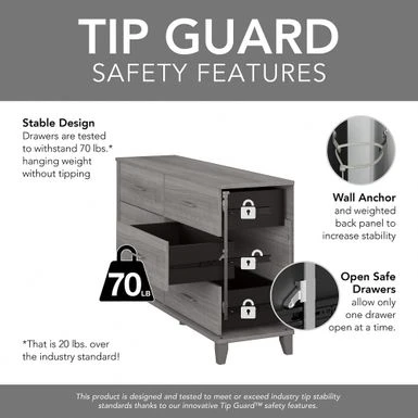 - Six-drawer Dresser tested with 70 lb. weight for stability