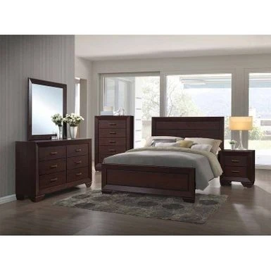 - Coordinate your bedroom decor effortlessly with the exquisite cocoa finish of this four-piece set