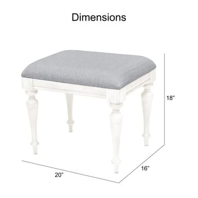 - Vanity Stool Dimensions: Â 18 inches high x 20 inches wide x 16 inches deep