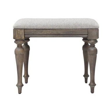 - Rustic ivory stool features a dove gray fabric seat