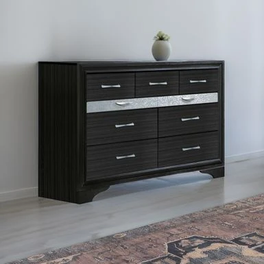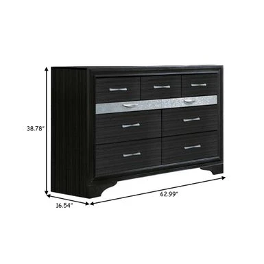 Two Tone Wooden Dresser With Nine Drawers, Black And Silver – Black – 9-drawer