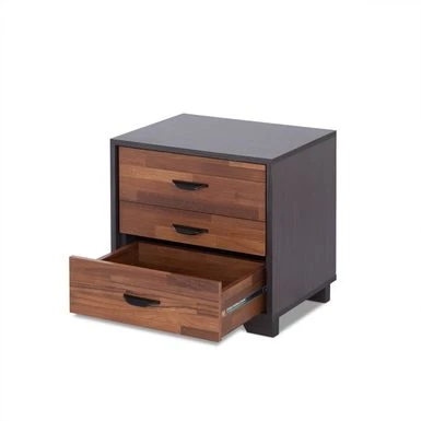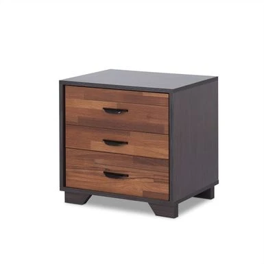 Add a touch of modern elegance to your bedroom or living room with the Urban Designs Dore Collection 3-Drawer Nightstand. Featuring a beautiful blend of espresso and walnut finishes, this space-saving nightstand offers three roomy drawers with easy metal glider runners for storing all your essentials. Its versatile design allows it to be used as a nightstand or end table. Assembly is required.