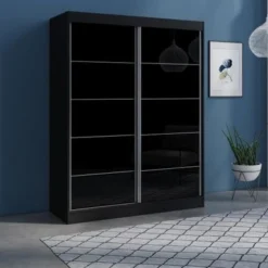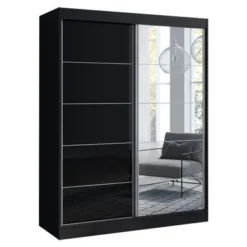 Aria High Gloss 2-door Modern Wardrobe With Mirror – Wenge-47″