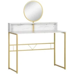 HOMCOM Modern Vanity Makeup Desk With Mirror, Dressing Table, White & Gold – White