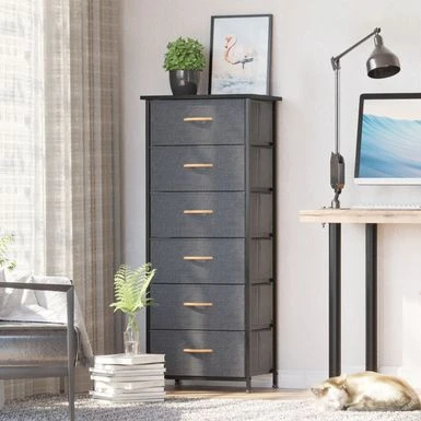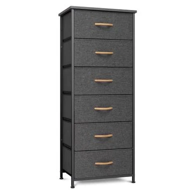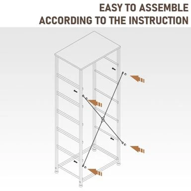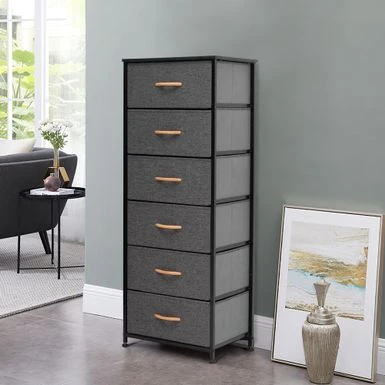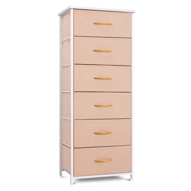 Add extra storage space to any room with the 6 drawers vertical dresser storage tower. Featuring a metal frame and a durable MDF wooden top, this dresser is both convenient and portable. Its six removable and foldable fabric drawers with wooden handles provide ample storage space for clothing, blankets, or towels. With four adjustable plastic feet that prevent scratches and adjust for uneven floors, this dresser is easy to care for and assemble. Enjoy the convenience and style of the 6 drawers vertical dresser storage tower in any room of your home.