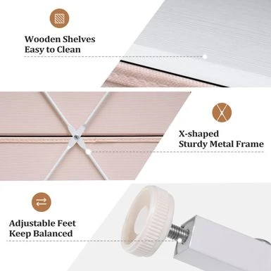 - 6 removable and foldable fabric drawers with wooden handles