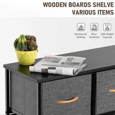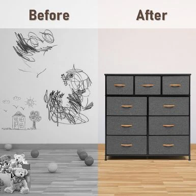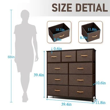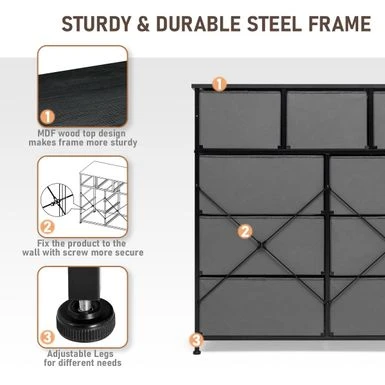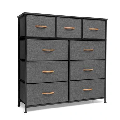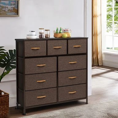 Maximize your storage space with the extra wide 9 drawers fabric dresser storage organizer. Designed for convenience and portability, this dresser features a sturdy, yet lightweight steel frame and a durable MDF top. Its nine fabric drawers with wooden handles provide ample storage space for clothing, blankets, or towels. The breathable fabric drawers ensure your belongings stay fresh and dust-free. Assembly is easy, so you can enjoy your new storage solution in no time!