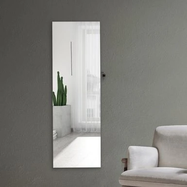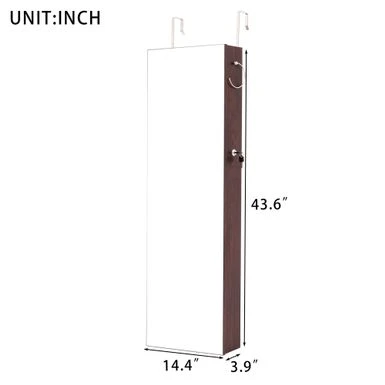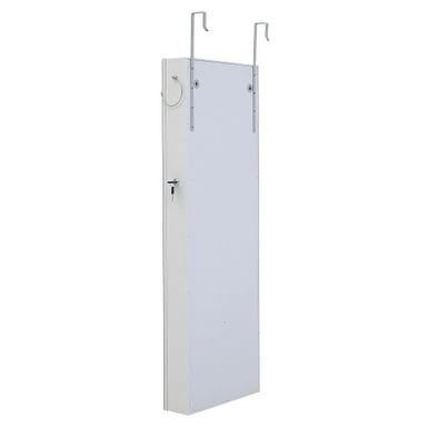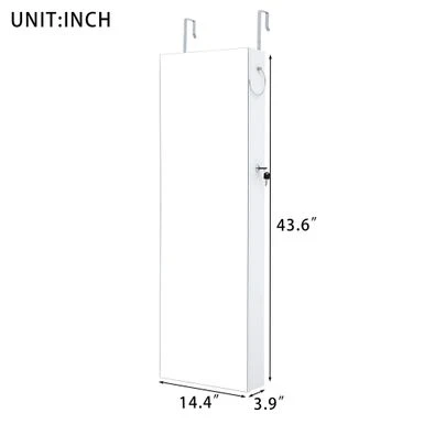 This Wall Door Mounted Jewelry Storage Mirror Cabinet with LED Lights is the perfect combination of fashion and function. Made with high-quality MDF and equipped with a stylish velvet interior, it not only serves as a mirror but also as a useful storage rack. The velvet interior protects your jewelry from scratches, and the key lock ensures your privacy and safety. With six LED lights, you can easily choose jewelry in any lighting environment. The spacious interior allows you to store necklaces, bracelets, rings, earrings, and more. Plus, the small internal mirror saves time by allowing you to try on jewelry without closing the door. Save space by mounting it on a wall or a door.