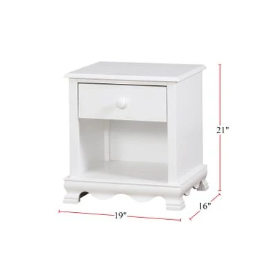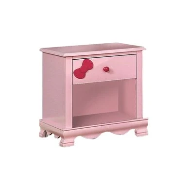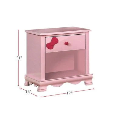With its lovely color and a little bow, this stylish nightstand brings with pink tone finish and sturdy wooden feet. Providing one drawer and open bottom shelf for storage that is reinforced with sturdy dovetail construction. With its lovely color and a little bow, this stylish nightstand brings with pink tone finish and sturdy wooden feet. Providing one drawer and open bottom shelf for storage that is reinforced with sturdy dovetail construction.