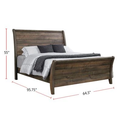 - Curved, plank-style sleigh headboard and footboard