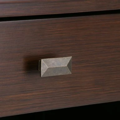 - Antique bronze knobs and metal drawer glides